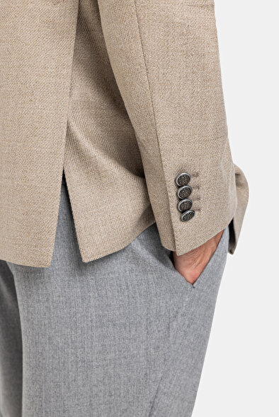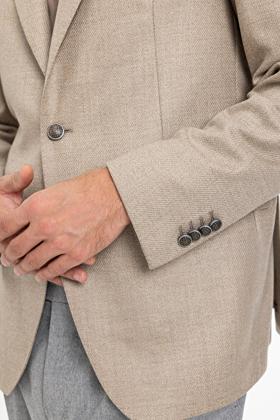 VAKKO BY TAGLIATOREİpek ve yeni yün karışımlı kumaştan üretilen bej renkli Vakko ceket, düğme kapamalıdır.
